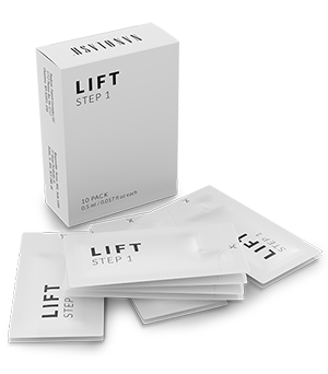 Efter att ha förberett fransarna, applicera Step 1 Lift börjande från fransrötterna. Håll 1 mm avstånd från vattenlinjen och applicera inte produkten på ögonfransarna. Låt produkten verka i 7-10 minuter, beroende på fransarnas skick. Efter denna tid, ta bort produkten med en bomullsrondell eller applikator. Förpackningen innehåller 10 påsar med lash lift och laminering aktivator.